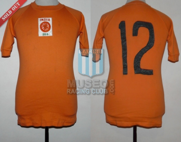 MATCH WORN!!! Rarísima camiseta marca Babua de color naranja de la Selección de India usada por el jugador Narender Thapa en el partido disputado vs la Selección Argentina (0-1) jugado el 14-01-1984 en el Estadio Eden Gardens de Calcuta, India por la 2da Fecha de la Copa Nehru de 1984!!.