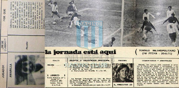 Torneo Metropolitano 24ta Fecha vs San Lorenzo (0-3) jugado el 20-06-1971 en Avellaneda.