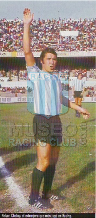 MATCH WORN!!! Espectacular camiseta de Racing usada por Rubén Osvaldo “Panadero” Díaz en el año 1972!!. Este modelo se uso entre otros partidos contra Boca Juniors (3-1) en cancha de Racing el 25-06-1972 por la 21ra Fecha del Metropolitano de 1972 (torneo en el cual Racing salio Subcampeón a 6 puntos del campeón San Lorenzo)!!. La camiseta presenta algunas manchas de sangre producidas durante el partido?. La camiseta fue entregada por el ex jugador de Racing José Omar “Pato” Pastoriza a Ricardo Alfieri, reconocidísimo fotógrafo que trabajo durante muchos años para la Editorial Atlántida y la Revista El Grafico!!!. La camiseta esta firmada y dedicada y dice: “Don Ricardo de mi segunda casa como fue este club, esta camiseta para mi amigo, como símbolo de un gran recuerdo. Pato”. Numero 13 de tela cocida a la camiseta!. Marca Athleta!.