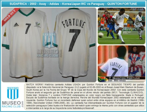 Camiseta usada por Quinton Fortune en el partido vs Paraguay de la Copa del Mundo de Corea/Japón 2002!.