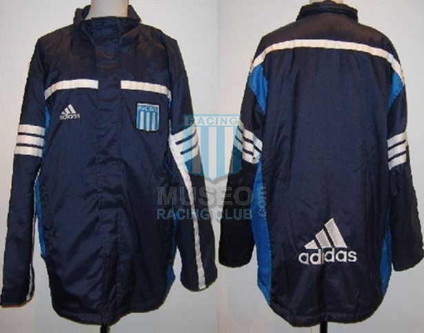 Hermoso camperon Adidas original de Racing Club de color azul con algunas partes color celeste usado por el Cuerpo Técnico y jugadores durante el Torneo Apertura 2000 y el Torneo Clausura 2001!.